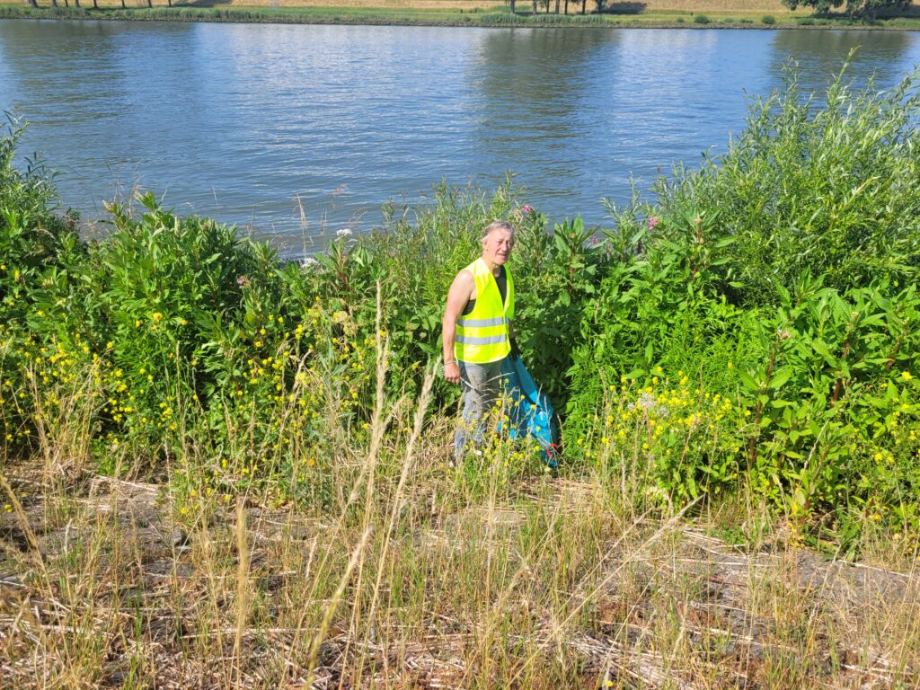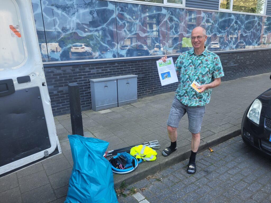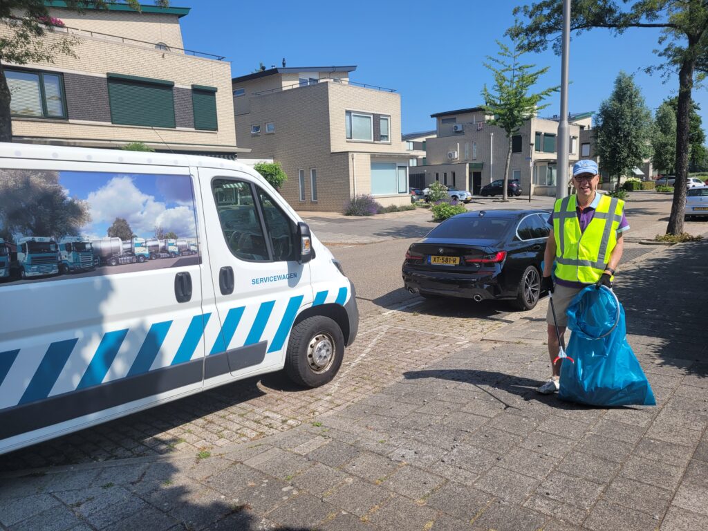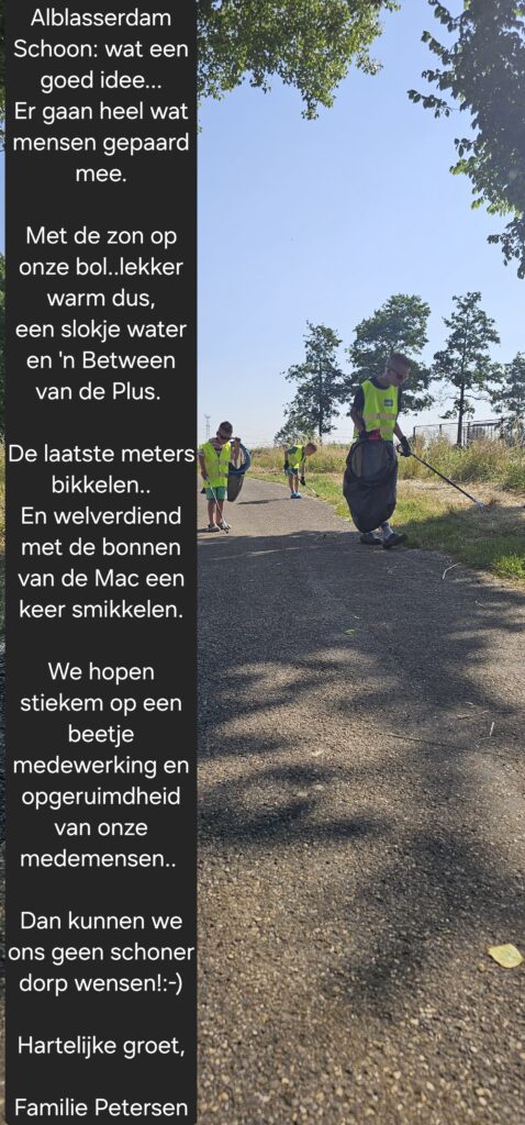 Onder tropische omstandigheden zijn 74 deelnemers bijna alle straten van Alblasserdam langs gegaan om zwerfafval op te ruimen. We hadden ook een noviteit, we gingen voor het eerst gebruik maken van een rugstofzuiger op accu ( beschikbaar gesteld door de Stichting Elshout ). Deze gaat gebruikt worden om sigarettenfilters op te zuigen. Henk Zuidema ( 76 jaar jong ) heeft hem bij het Makado gebruikt en daar in 3 uur tijd 2 stofzuigerzakken gevuld met duizenden peuken. Het is echt ongelofelijk hoe normaal rokers het vinden om de peuk achteloos weg te gooien, ook al staat er bij b.v. bij de ingang van het Makado een afvalbak. In die 3 uur is er van de Lidl tot Albert Heyn alles op het looppad weggezogen. Het is de bedoeling om bij meerdere locatie’s waar veel mensen komen, deze rugstofzuiger te gaan gebruiken.