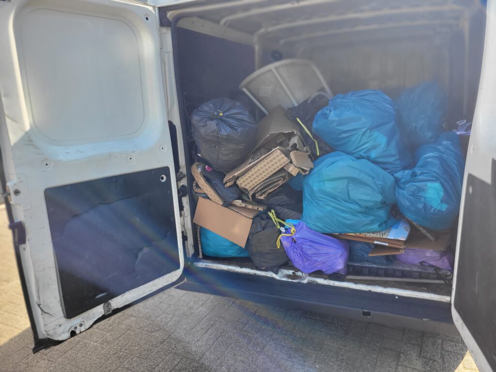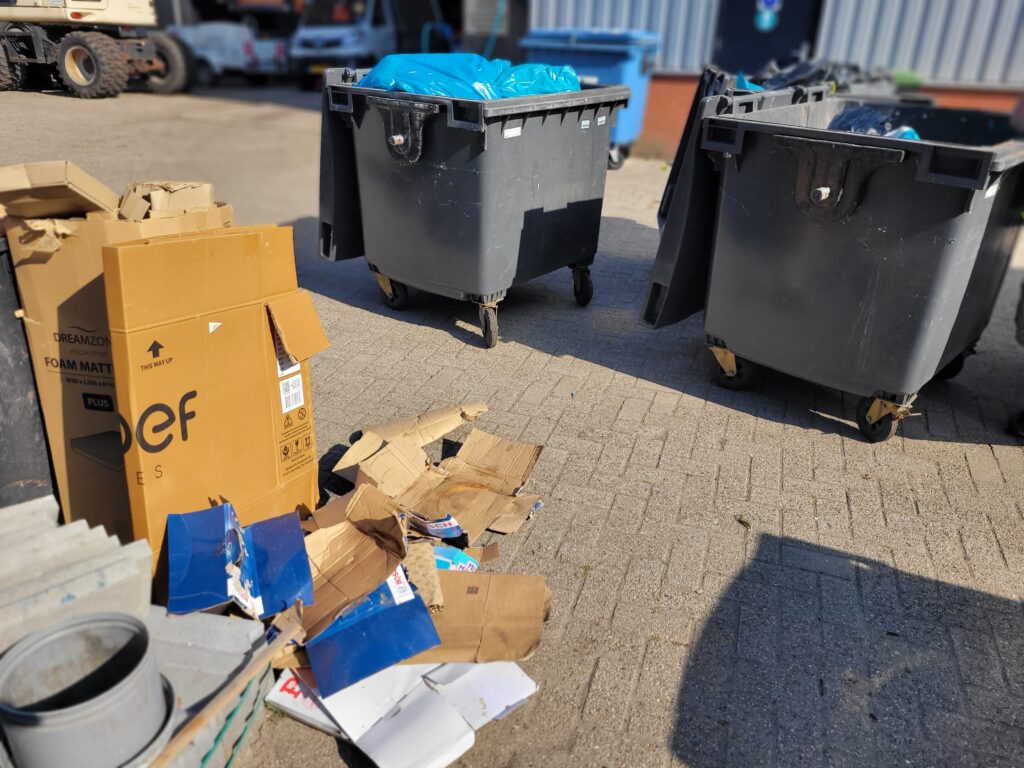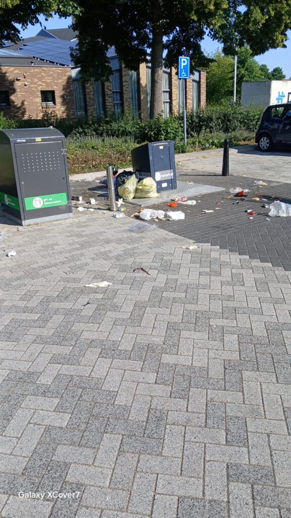Iets minder mooi was de situatie bij de ondergrondse restafvalbak bij het Scheldeplein, waar de bak buiten gebruik bleek en er stonden zeker 10 zakken met afval omheen waarvan sommige waren open gemaakt door vogels, met als gevolg een puinhoop rond die afvalbak. Zakken met alleen glas, alleen groente/fruitafval en ook restafval. De familie de Wildt heeft alles netjes in een nieuwe vuilniszak gedaan en daarna maar alle zakken in de OTT-bus gedaan.