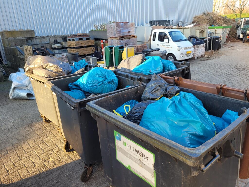 Triest is steeds om te zien hoe het er bij sommige HVC-bakken aan toe gaat. Bij het zwembad staan 3 bakken, voor kleding, glas en plastic. Er wordt daar regelmatig van alles en nog wat bijgezet. Deze keer bleek dat plasticbak vol was en dus leggen mensen de gevulde zakken er maar naast en er was zelfs iemand die 4 stukken CV-leiding in de plasticbak had gepropt. Dus op aangeven van een verontruste deelnemer de zooi in de bus geladen en 200m verder stond een plastic bak die bijna leeg was en daar alle zakken met plastic in gedaan en de rest meegenomen.